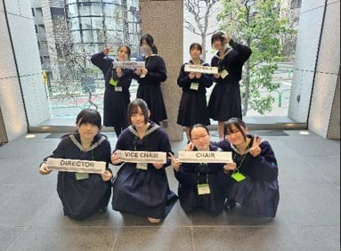 本校からは8名の生徒が参加しました。そのうち高校2年生の3名は、E議場のフロント(議長・副議長・会議監督)を務め、会議の準備や円滑な進行のために尽力しました。この3名は、中学3年生の12月に初めて模擬国連を見学しました。そこから2年後、このような大規模な会議の運営に携わる機会をいただき、生徒たちの大きな成長を感じることができました。