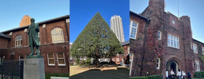 先生のご講演の後は、卒業生2名にキャンパスを案内してもらいました。赤レンガ造りのモリス館や端正な並木道、厳粛なチャペルや趣深い食堂など、歴史を感じる建物と現代的な美しい建物が調和しており、緑豊かな学内は都会らしい洗練された活気があふれていました。池袋駅から徒歩10分圏内にも拘わらず駅前の喧噪から隔てられた静けさもあり、学生が憩う芝生広場やカフェ、図書館などがコンパクトにまとまっていて過ごしやすい環境が整っています。