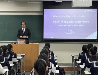 「立教大学は法、経済、理学部を除くすべての学部で女子生徒が多い大学です」という驚きの情報から始まり、「リベラルアーツ教育の伝統から卒業必要単位の4分の1は教養科目を受講するカリキュラム編成になっており、さらにグローバル教養副専攻という副専攻を履修することで国際社会で通用する教養を身に着けることができる」と力説してくださいました。