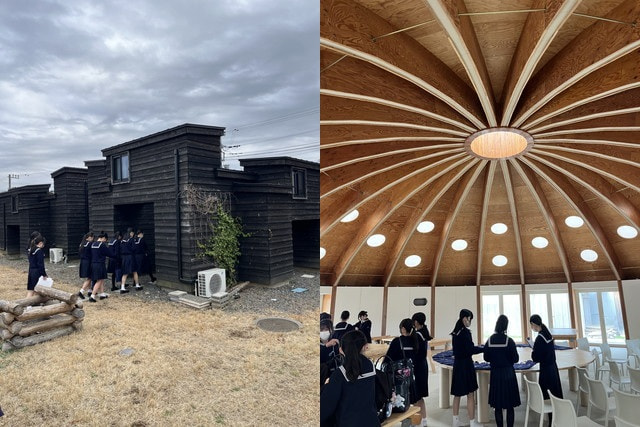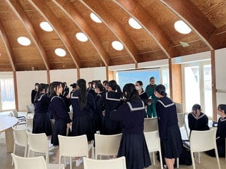 講演の冒頭、長谷部先生は「このドーム状の建物は何に使うと思う?」と生徒に問われました。生徒たちは「授業?」「ミーティング?」と思い思いに答え、それに対して先生は「どれも正解です」とにこやかにおっしゃいました。