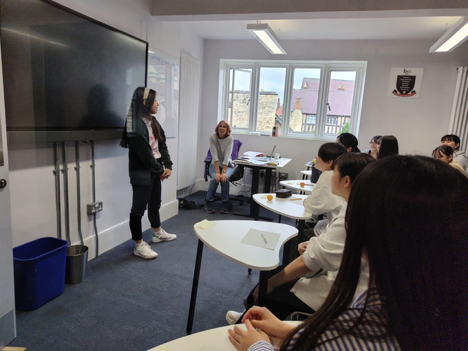 午前中の授業は4つのクラスに分かれて授業を行いました。どのクラスも自己紹介のような活動から始まりましたが、クイズ形式だったり、ワークシートを用いたりと、各クラス先生ごとに工夫をされた授業を行っています。午後は、バイブリーとボートン・オン・ザ・ウォーターの2か所を巡りました。バイブリーでは石を縦に積み上げた独特な建築様式や綺麗な水辺の景色を楽しみました。ボートン・オン・ザ・ウォーターでは自由時間を使ってクリームティーを楽しむ生徒もいたようです。