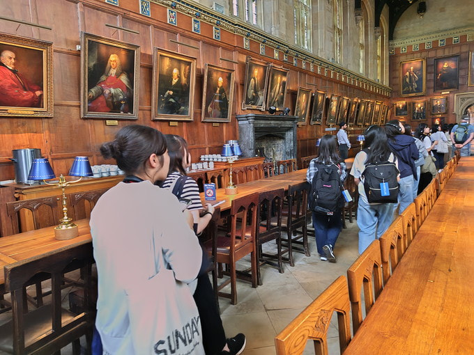 5日目は、1日かけてオックスフォードを散策しました。最大のcollegeであるクライストチャーチを見学した後、オックスフォードで学ぶ学生さんが街を案内をしてくれて、観光スポットだけでなく、自身が所属するcollegeや、学生生活の様子なども説明してくれていました。